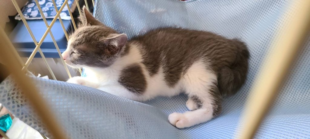 とっても甘えた猫さんのまるちゃん☆家族決定☆ 投稿日 2022年7月31日 更新日 2022年9月15日 著者 管理者-1 カテゴリー 家族決定! 新しいお名前はリリアンヌちゃんです。猫番号:20220731-1名前:まる性別:メス推定年齢:3か月柄:グレー白不妊手術:未ノミ駆除・駆虫済みエイズ・白血病ウイルス検査 陰性3種混合ワクチン接種済み性格:ちょっと慎重で、でも、とっても甘えん坊のまるちゃん。眠たくなると胸元まで登って甘えてきます。おもちゃで遊んでもらうのも大好きです。ミルクも大好き。そら君と兄妹です。
