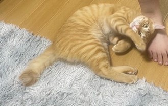 甘えん坊いちくん☆家族決定☆ 投稿日 2024年6月27日 著者 管理者-1 カテゴリー 家族決定! スヤスヤ爆睡中 お母さんの足にゴロンしてスリスリ交通量の多い道路を渡って母さん猫と兄弟のちょるると一緒に餌場に現れたいち君。交通事故の心配があり兄弟で保護しました。 家族に迎えて下さったご夫妻は、都内の猫カフェからの帰り、偶然みぃの会の譲渡会を検索してお越し下さりいち君(仮名ミミ君)と出会い、次の日に家族として迎えたいと言ってくださいました。ちょい怖がりさんのいち君をよろしくお願いします。