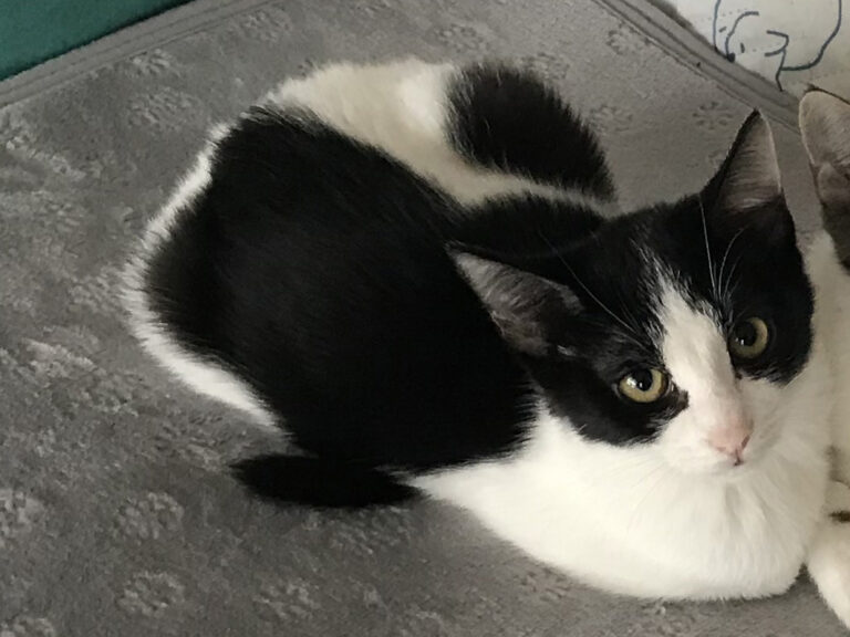 両手・両足とも指先が少し白く、首元もお腹も控えめに白が入っています。