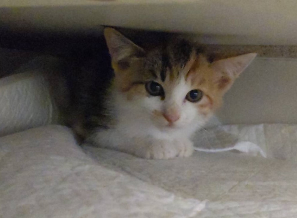 名前:小夏ちゃん                                   性別:メス                                              毛色 : 三毛 色目はルナちゃんより薄目です。 シッポは鍵シッポ                                      推定年齢 : 4ヶ月 推定誕生日5月5日                           性格 : 7月7日保護から10日間の様子ではママ猫にそっくりなお転婆さんです。           保護時体重700gとすこし→9月5日現在1.86kg すくすく大きくなりました。