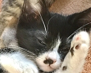 ⚫︎抱っこはできますが、まだ人馴れ修行中です⇒10月9日現在ほとんど人馴れ修業は終了です。モモちゃんが保護主さんの腕と体の間でコロンして甘えている時、あんずちゃんは近くに座って控えめに甘えの順番待ちをする穏やかな性格です。